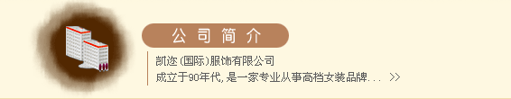 广州市凯迩服装有限公司 全权负责 "CAREER"-法国·凯迩在中国大陆地区的品牌文化建设、市场营销推广、生产、专卖经营等运作及管理;作为(国际)服饰公司品牌国际化战略先锋之一。